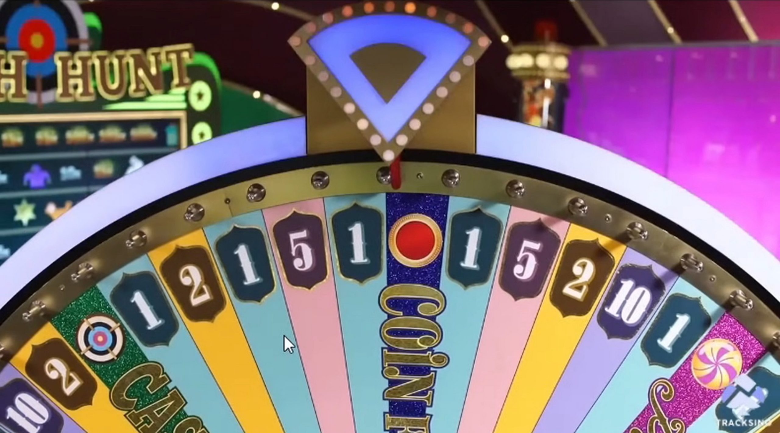 Then the host spins the wheel and waits for it to stop under the mechanical pointer. The pointer fixes the segment. If it matches the symbol from the top window, the modifier applies. If the segment is a “feature” that triggers an extra draw, the game switches to that scene with its own rules.